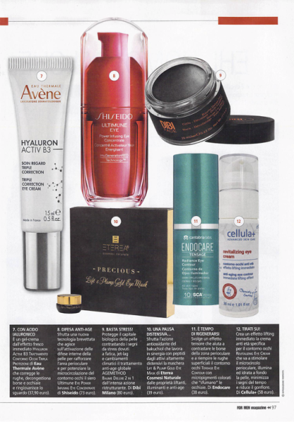 Sul nuovo numero di For Men, si parla della nostra Revitalizing Eye Cream, la crema antietà specifica per il contorno occhi